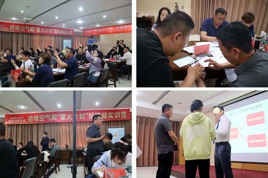 4月23日至24日,哈唯空氣能"星火計劃"首期短視頻營銷密訓營在石家莊圓滿落下帷幕。本次培訓由哈唯空氣能聯(lián)合行業(yè)頂尖短視頻培訓機構(gòu)傾力打造,針對30余位核心經(jīng)銷商展開為期兩天一夜的沉浸式集訓。哈唯營銷總監(jiān)楊青濤、河北大區(qū)經(jīng)理袁紹廣親臨現(xiàn)場,與參訓學員共同開啟這場短視頻營銷的破局之旅。